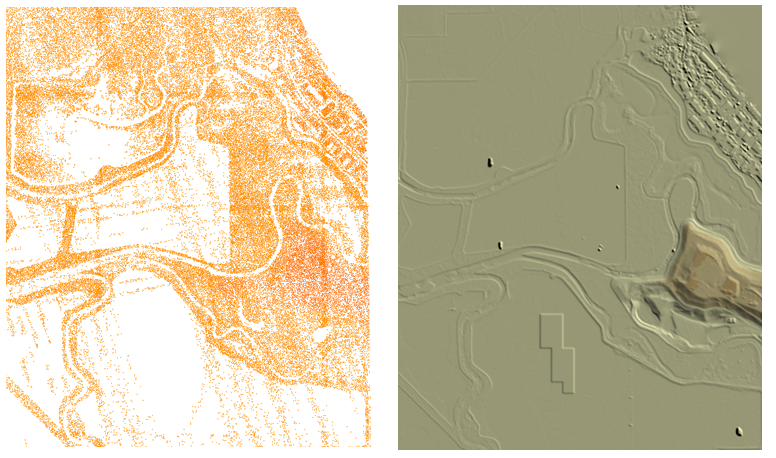 从点云创建的曲面可以提供高度详细的地形视图。