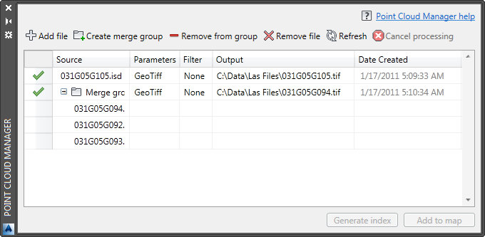 通过曲面管理器,您也可以使用合并组将多个输入文件指定给一个曲面文件。例如,您可能要创建合并组以便对多个输入文件应用空间过滤器。合并组的源文件必须使用相同的坐标系。