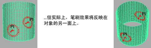 请注意,现在曲面上有两个、四个或八个笔刷轮廓(具体取决于选定的反射轴数)。