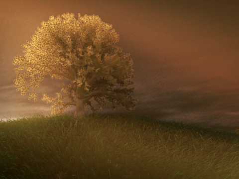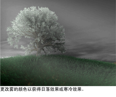 - 若要修改雾的颜色,可以在 mib_light_spot 节点内更改“颜色”(Color)属性。或者,可以单击“颜色”属性旁边的“贴图”(Map)按钮,然后将“颜色”(Color)属性映射到 mental ray mib_cie_d 节点。在 mib_cie_d 节点下,增加温度值。值为 4000 时可产生一种日落的感觉。若要获得蓝色调更浓的雾,请增加温度值。