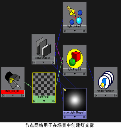 下列是使用 mental ray for Maya 创建灯光雾的示例工作流程。