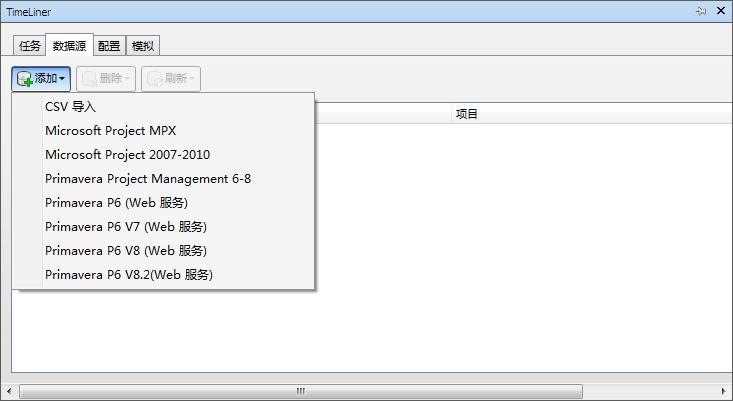 注: 由于从本质上讲,Primavera Project Manager 6 产品使用 SDK 进行数据访问,因此使用“TimeLiner”导入数据所需的时间可能比其他格式所需的时间要长。