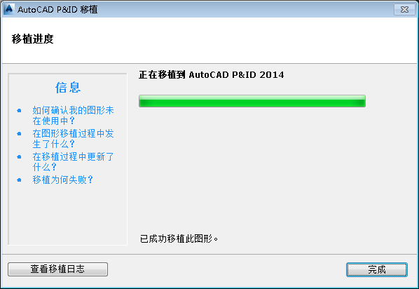 7. 单击“移植”。“图形移植进度”页面将指明移植的进度。