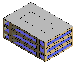 要创建天井,可创建一个小型天井体量形状,其体量楼层配置不同于大型体量模型。 将天井体量放在大型体量模型内部。