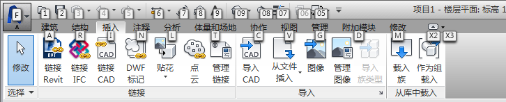如果功能区选项卡带有包含附加工具的扩展面板,则在键入其按键提示后,将显示该面板以及那些工具的按键提示。