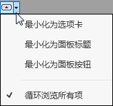 | 指定首选的功能区最小化方式 | 单击功能区选项卡右侧的向右箭头并选择所需的行为:“最小化为选项卡”、“最小化为面板标题”、“最小化为面板按钮”或“循环浏览所有项”。 ![]() |