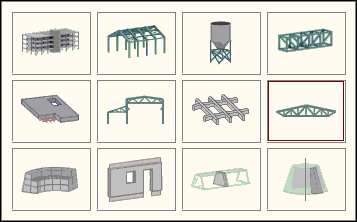 When opened, you can create one of the following: building, 2D truss, 3D truss, 2D frame, 3D frame, grillage, plate, shell, plane stress structure, plane deformation structure, axisymmetric structure, or a volumetric structure.