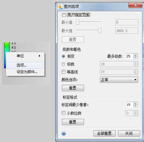 在图例上单击鼠标右键,然后单击“选项”。