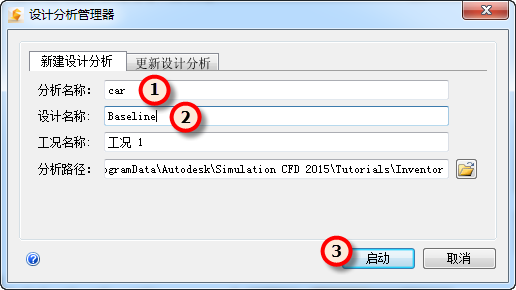 3. 在“设计分析管理器”中,为设计分析、设计和工况指定名称