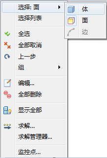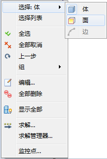 4. 在模型外的区域单击鼠标右键。单击“选择类型”,然后单击“面”。