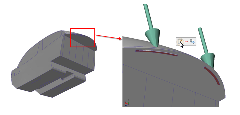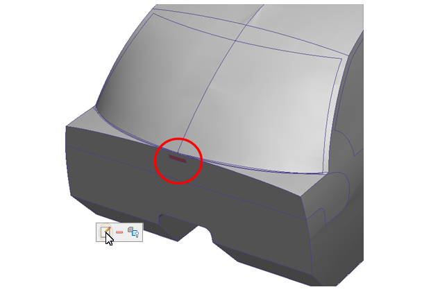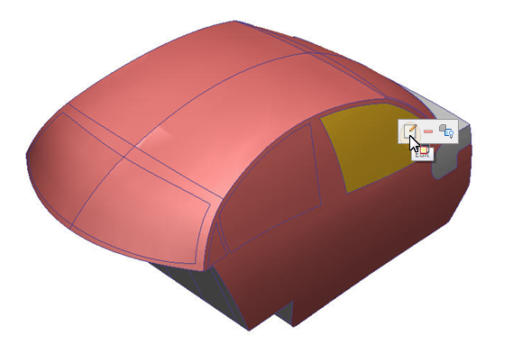 11. 将模型外观恢复为“着色”,并旋转模型。选择座舱后部的两个弧形面。单击上下文工具栏中的“编辑”按钮。