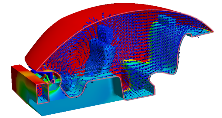 5. 若要显示矢量,在结果平面上单击鼠标右键,然后单击“矢量”。选择速度矢量。