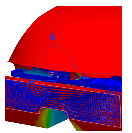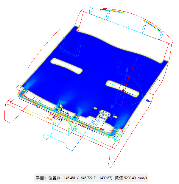 1. 若要查看从前寄存器流出的气流,左键单击结果平面并选择 Y 图标。然后,拖动平面,使其穿过通风装置,如图所示。