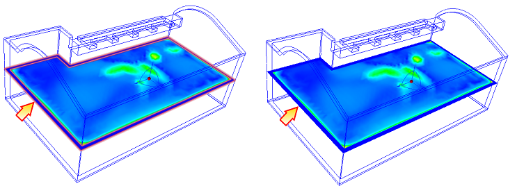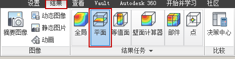 “结果平面”是在三维模型中显示数据的主要工具。这些切面在 Autodesk Simulation CFD 结果可视化中扮演多重角色: