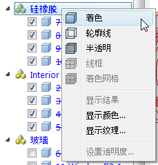 5. 在“硅橡胶”分支上单击鼠标右键,然后选择“显示颜色...”