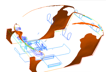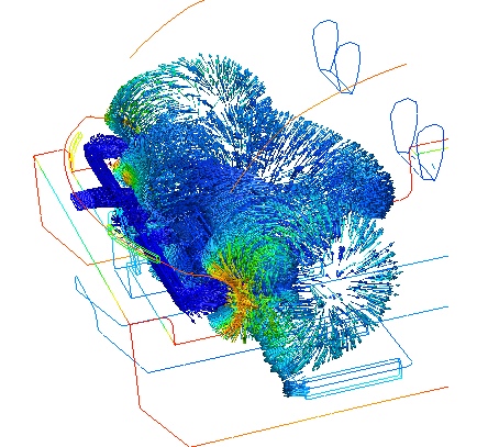 8. 单击“矢量设置”选项卡。从结果菜单中选择速度矢量。将外观更改为轮廓。拖动长度和数值滑块,以查看座舱中的气流情况。