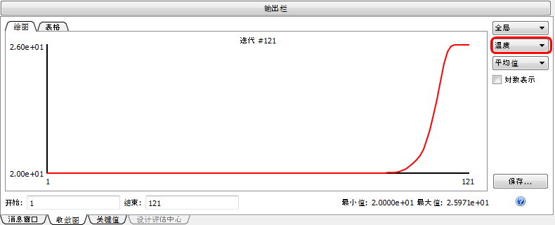 3. 若要查看温度收敛图,从结果菜单中选择“温度”: