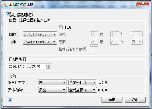 选中“启用太阳辐射”复选框。