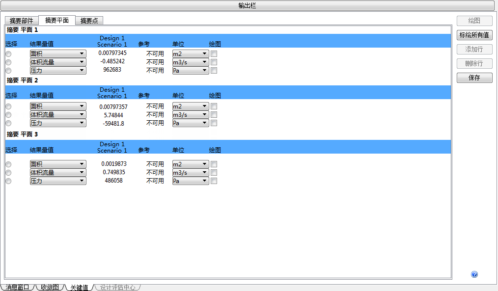 在此步骤中,我们将使用“决策中心”中的“摘要平面”和“关键值”来测量喷嘴入口、最狭窄处和出口的压力。