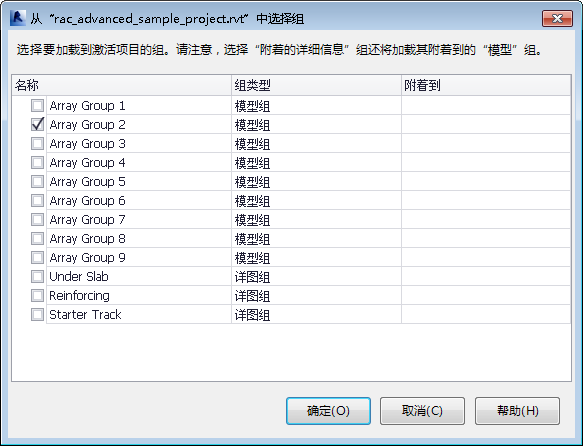 - 选择 .rvt 文件,然后单击“选择”可以查看可用的组。