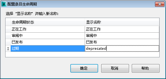 在“显示名称”列中,双击生命周期状态的当前显示名称,然后输入一个新显示名称。