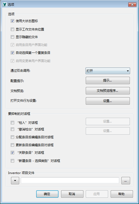 - 可以指定对普通对话框的默认响应,以便每次显示某些对话框时,首选响应均是默认选项。还可以指定无需提示您进行输入而自动执行的命令,减少您需要直接与 Vault 交互的次数。