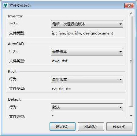 - 支持您确定 Inventor、AutoCAD 和 Revit 文件是由最新版本、上次运行的版本,还是保存文件的 CAD 应用程序的版本打开。