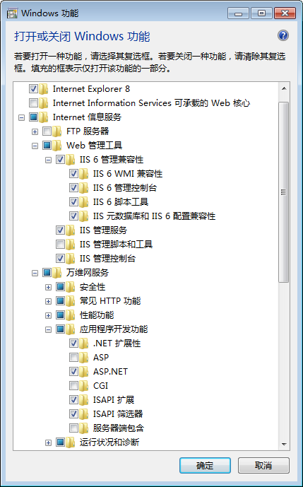 - 展开“Internet 信息服务”►“万维网服务”►“应用程序开发功能”。