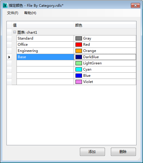 如果生成的报告返回了一个尚未为其指定颜色的值,则报告控制会从预定义的颜色列表中将颜色指定给一个新值,并针对新颜色为报告模板返回名称和值对。新值和默认颜色指定将显示在“指定颜色”对话框中,管理员可在此通过为此新值指定颜色来更新模板。