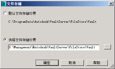 在该文件存储中,Vault 数据库存储 Vault 服务器中的实际文件。当您启用 Vault 以使用文件存储服务器时,您可以控制文件存储的存放位置。在“文件存储”对话框中,启用一个或多个 Vault 以使用 File Server 而不是 Autodesk Data Management Server 来存放文件存储更新。