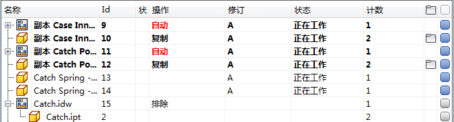 主 Copy Design 视图网格显示可用于复制的文件的名称、文件标识号、将针对文件执行的操作、文件的版本和状态以及当前列表中出现的文件实例数。