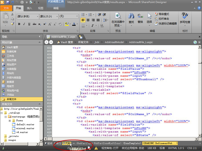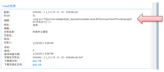 在 AdskVaultFile 上调用“创建/升级”后(如下所示),配置页面将被覆盖,缩略图可能无法正确显示。若要恢复缩略图的正确显示,必须手动更新配置页面 XSL。实现更新的方法有多种。所有方法都要求熟悉配置页面和 XSL 配置。下面列出的该过程需要 Microsoft SharePoint Designer 2010,可从 Microsoft 在线获取。