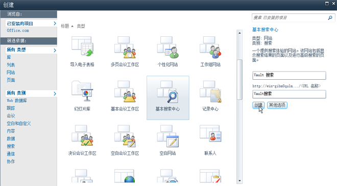 您必须为 Vault 配置搜索网站才能在 Vault 中找到文件。