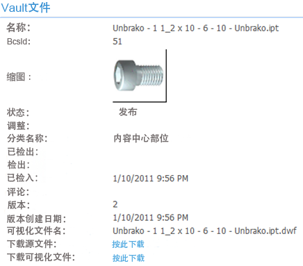 通过结合使用 Autodesk Vault Professional 与 Microsoft SharePoint 2010,可以实现 SharePoint 2010 与 Microsoft Business Data Connectivity Service (BDC) 的集成。