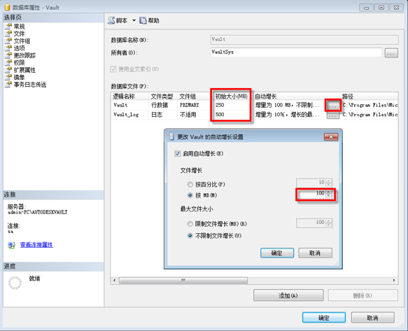 @echo Setting %VAULTNAME% database Autogrowth value...