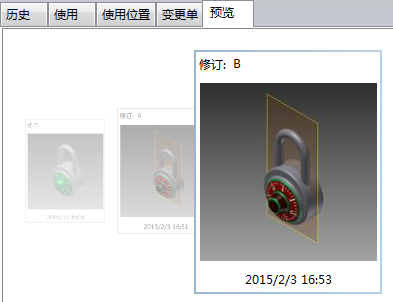 预览样式默认为轮播缩略图,这样您便可以在 Vault Basic 中循环查看文件的历史版本,以及在 Vault Workgroup 和 Vault Professional 中循环查看文件的历史修订。文件版本或修订将显示在每个缩略图的顶部,上次检入日期将显示在底部。