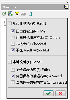 使用“过滤器”菜单可以过滤 Vault 浏览器中列出的文件。