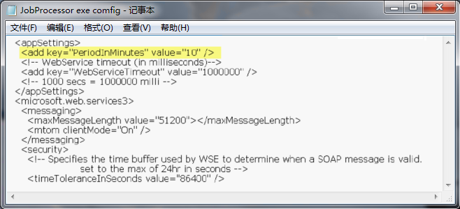 JobProcessor.exe.config 文件中为以下参数配置时间限制: