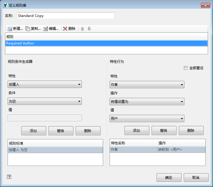 可以在“定义规则集”对话框中创建、编辑和删除规则。