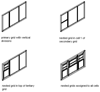 Each door/window assembly grid is one dimensional with either a horizontal or vertical division. By nesting grids in the door/window assembly style, you can create a variety of patterns from simple to complex.