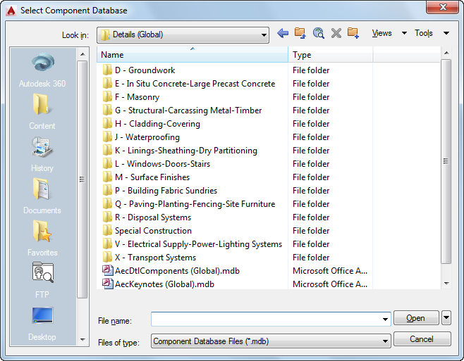 Use this procedure to add a database to the list of active detail component databases from which components can be selected for insertion, copied to a tool palette, or used to modify an existing tool.