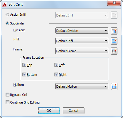 select a mullion definition for the grid created after the cell is subdivided | select the mullion definition. |
