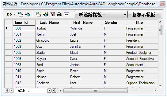 規劃資料來源後,您可以使用「資料檢視」視窗從程式中檢視資料庫記錄。