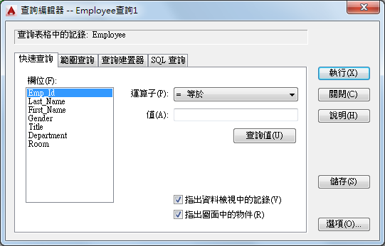 列示目前資料庫表格的欄位,從中可以選取要套用到查詢的欄位。