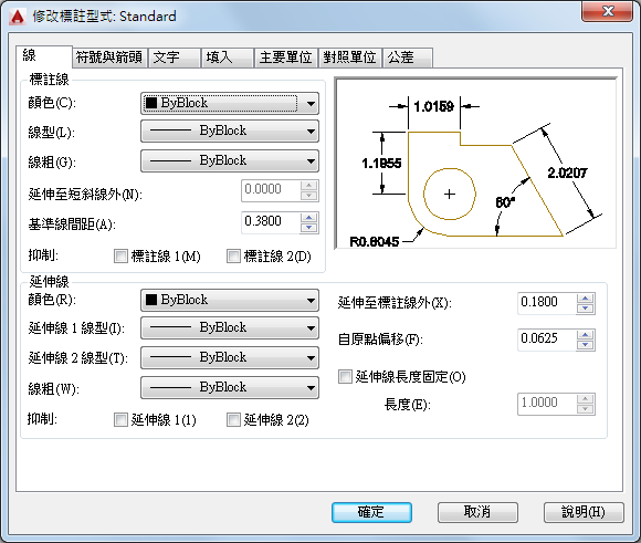 標註型式可協助您建立及執行製圖標準。您可以使用 DIMSTYLE 指令來設定許多標註變數,以控制標註外觀和模式的細微差別。所有這些設定都儲存在每個標註型式中。