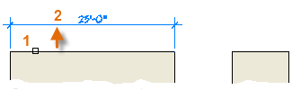 以下插圖說明了使用 DIMLINEAR 指令的方法。在啟動指令之後,可按 Enter 或空格鍵,選取直線 (1),然後按一下標註線的位置 (2)。