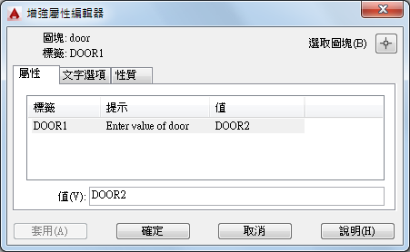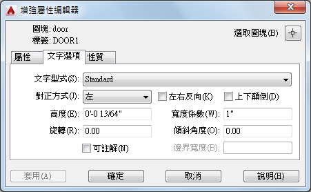 指定屬性文字的文字型式。該文字型式的預設值會被指定給該對話方塊中顯示的文字性質。