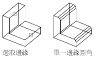 從選取單一邊變更為選取連續相切邊 (稱為鏈選取)。