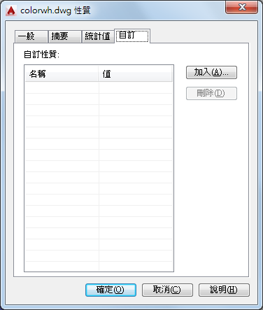 列示目前圖面的自訂性質值與自訂性質名稱。