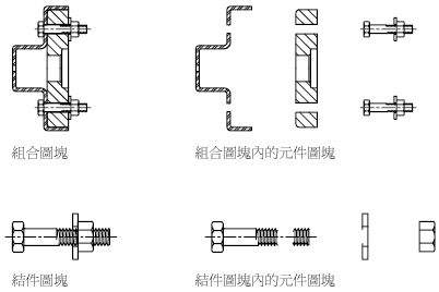 包含其他圖塊的圖塊參考稱為巢狀式圖塊。使用圖塊中的圖塊可以簡化複雜圖塊定義的組織結構。